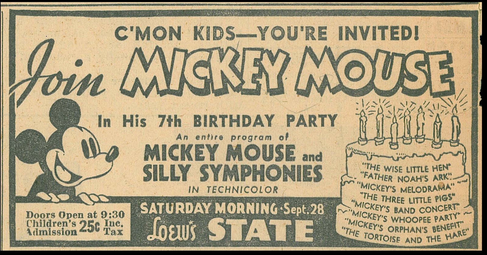It would appear we've reached a point where asking one hundred eight-year-olds if they've heard of Bugs Bunny will yield maybe a third who have. Cartoons that once ran in theatres are now sole concern of "adult collectors," as we're referred to on DVD boxes (along with warnings that Bugs and Daffy may be unsuitable for children!). Animation has seemingly gone full circle as to its target audience. Originally made for grown-ups, in fact for whole families, cartoons would be consigned to playpens thanks to 50's television. Now the old shorts are viewed as too free-wheeling by distributors better equipped to handle safe but inane product aimed at modern youth. I'll offer no defense for cartoons of my own formative years. Clutch Cargo, Deputy Dawg, and Astro Boy were and continue to be deserving of scorn. In fact, even Warner's output slipped a long way by the late fifties (manifestly evidenced in recent DVD collections featuring Bugs and Daffy). Since most agree that animation's Golden Age took place in the 30's and 40's, I'm put to wondering just how important cartoons were to exhibition during said enchanted years. Were Mickey, Porky, Popeye, et al essential to a ticket's worth of screen entertainment? Most (but not all) companies maintained cartoon units. It's safe to say patrons expected at least that or a comedy with each program, even as double features dug inroads. Hal Roach blamed animation for knocking his two-reelers off release charts. Sound and color partnered to make cartoons a most popular bonus with movies. So would a cartoon on the marquee tip scales between going out or staying home? Theatre ads from newspapers are handy for sorting importance of seven or so minutes to an evening's show. What follows here and in Part Two offer at least hints as to how animation ranked among promoting priorities.